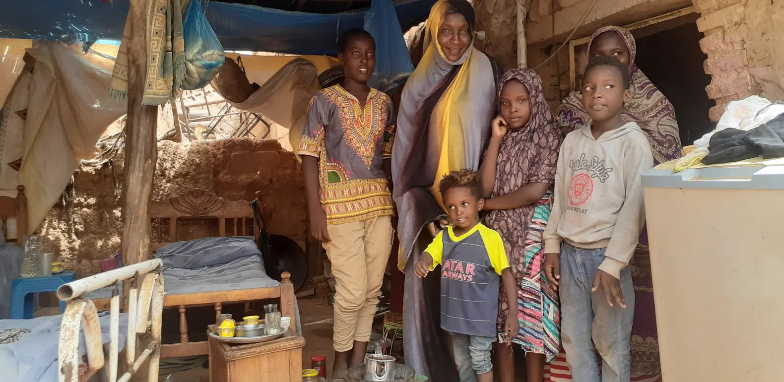 Sayeda lost her husband five years ago. Until recently, she sold falafels to feed her seven children. Her rented home was hit by bullets in the ongoing violence in Sudan, causing a fire which destroyed her furniture and cooking equipment.
